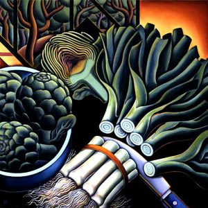 Still Life with Leeks and Artichokes, 1992, Oil on Canvas, 24" x 24", Private Collection
